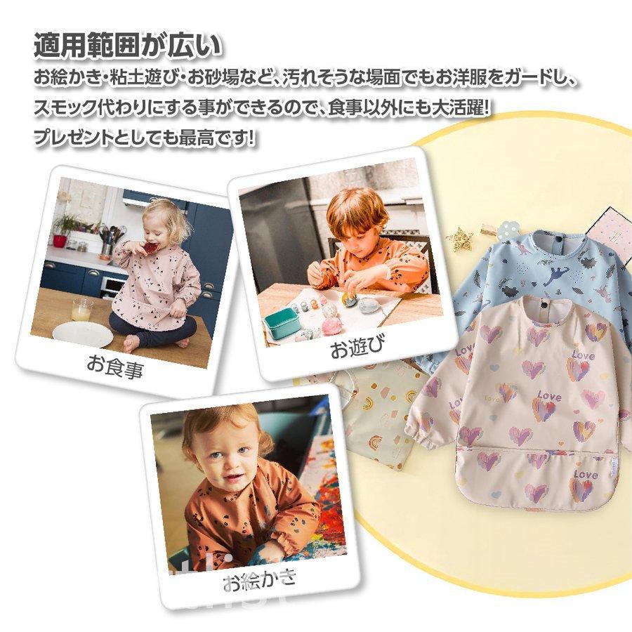 このスモックは、食べこぼしや汚れから大事な衣服を守るために設計されています。防水性のある素材で作られているため、飲み物やソースがこぼれても安心です。簡単に洗えるため、食後の手入れも楽々。忙しい世代の親にとっては、手間いらずで嬉しいポイントです。